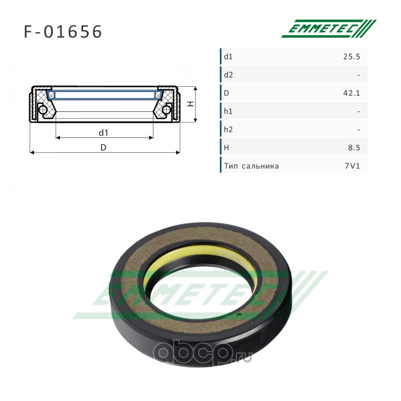 | EMMETEC | F01656 | Сальник рулевой рейки 25.5*42.1*8.5 (7V1) | ||