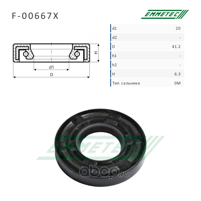 | EMMETEC | F00667X | Сальник рулевой рейки 20*41.2*6.3 (0M) | ||