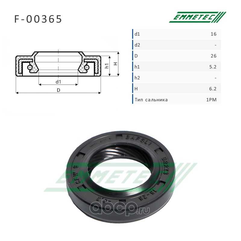 | EMMETEC | F00365 | Сальник рулевой рейки 16*26*5.2/6.2 (1PM) | ||