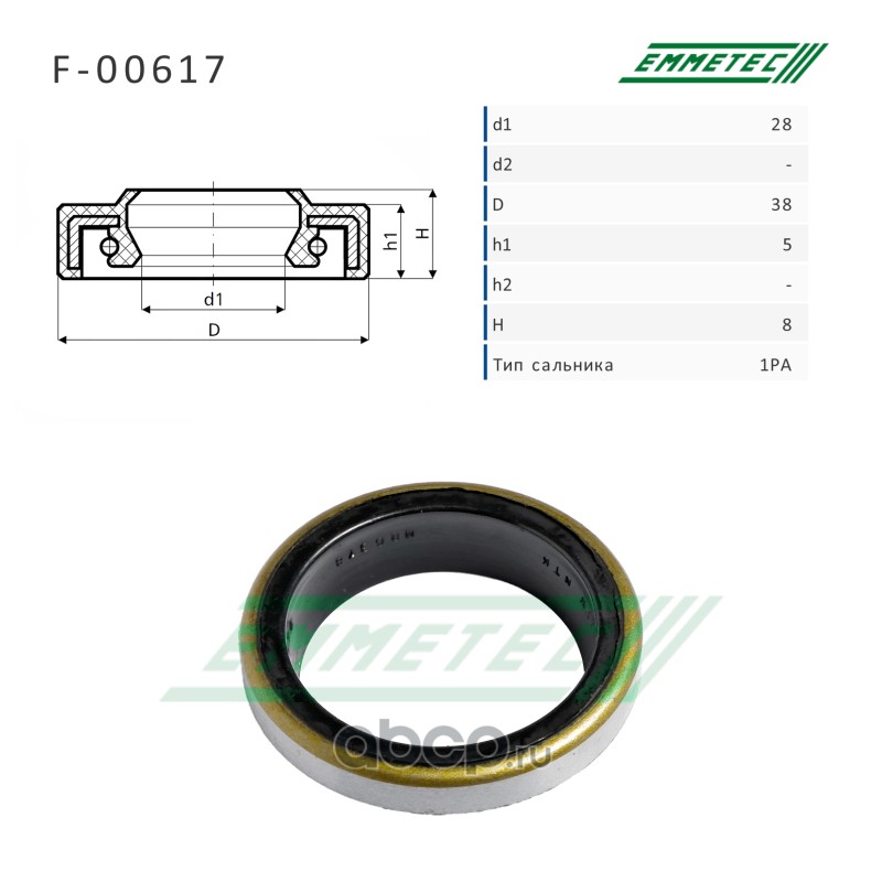 | EMMETEC | F00617 | Сальник рулевой рейки 28*38*5/8 (1PA) | ||