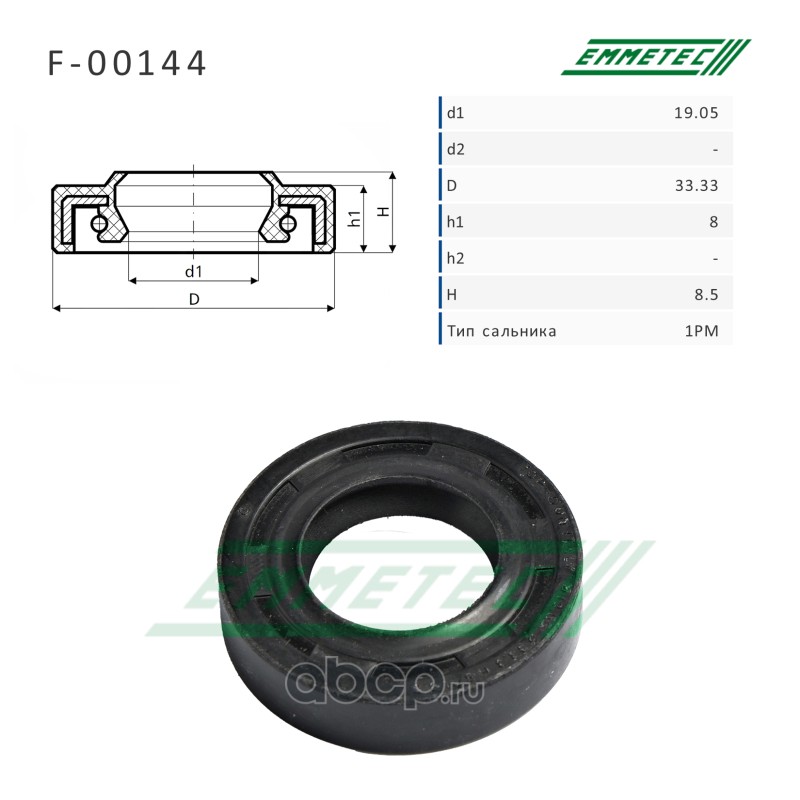 | EMMETEC | F00144 | Сальник рулевой рейки 19.05*33.33*8/8.5 (1PM) | ||
