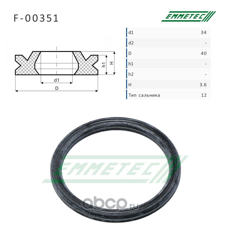 | EMMETEC | F00351 | Сальник рулевой рейки 34*40*3.6 (12) | ||