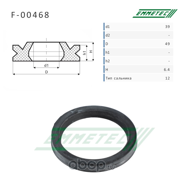 | EMMETEC | F00468 | Сальник рулевой рейки 39*49*6.4 (12) | ||