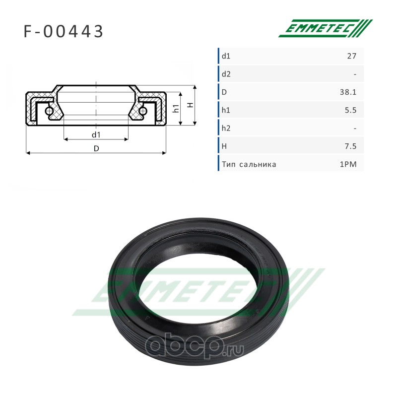 | EMMETEC | F00443 | Сальник рулевой рейки 27*38.1*5.5/7.5 (1PM) | ||