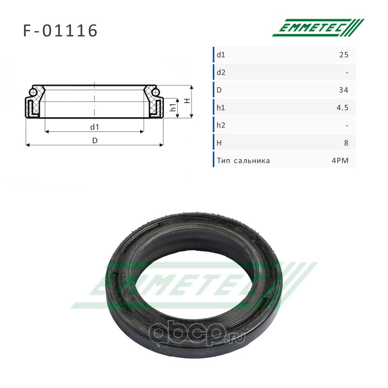 | EMMETEC | F01116 | Сальник рулевой рейки 25*34*4.5/8 (4PM) | ||