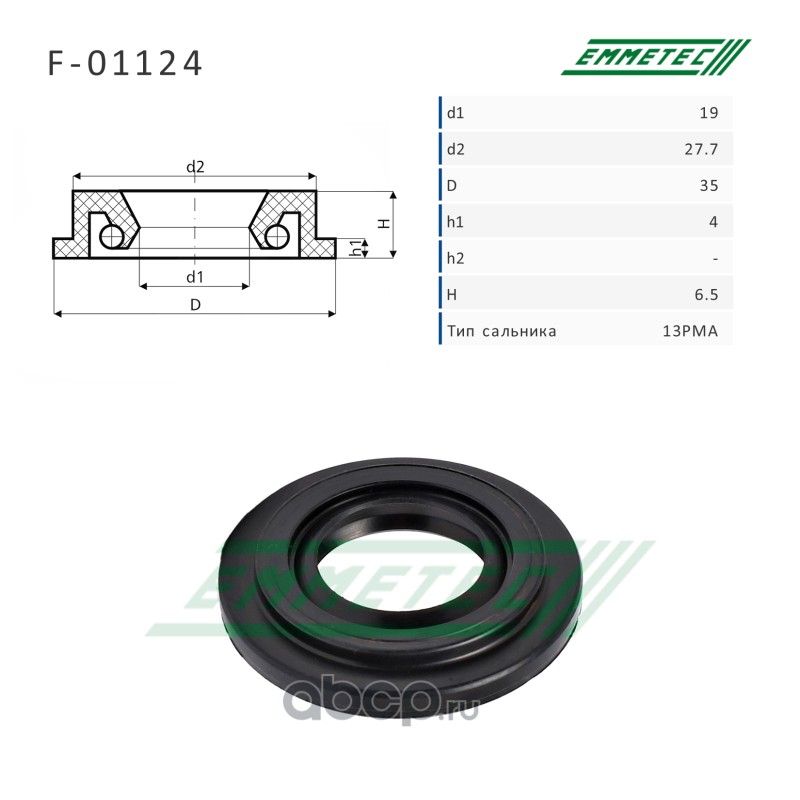 | EMMETEC | F01124 | Сальник рулевой рейки 19*27.7/35*4/6.5 (13PMA) | ||