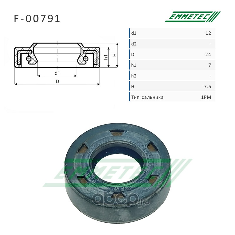 | EMMETEC | F00791 | Сальник рулевой рейки 12*24*7/7.5 (1PM) | ||