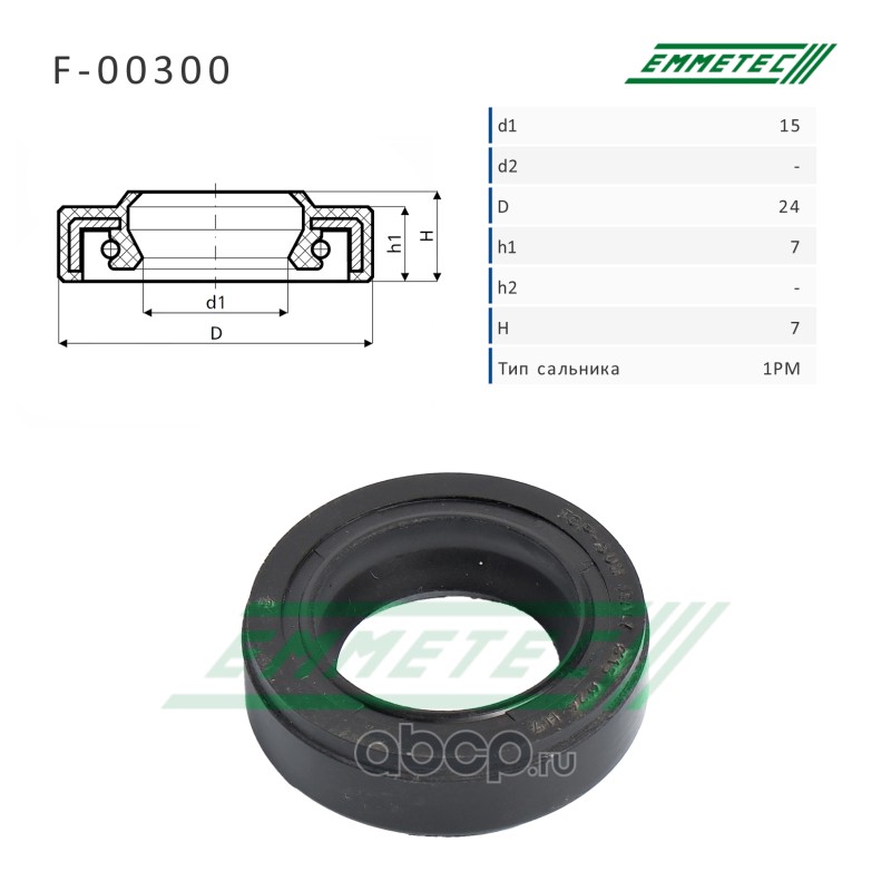 | EMMETEC | F00300 | Сальник рулевой рейки 15*24*7/7 (1PM) | ||