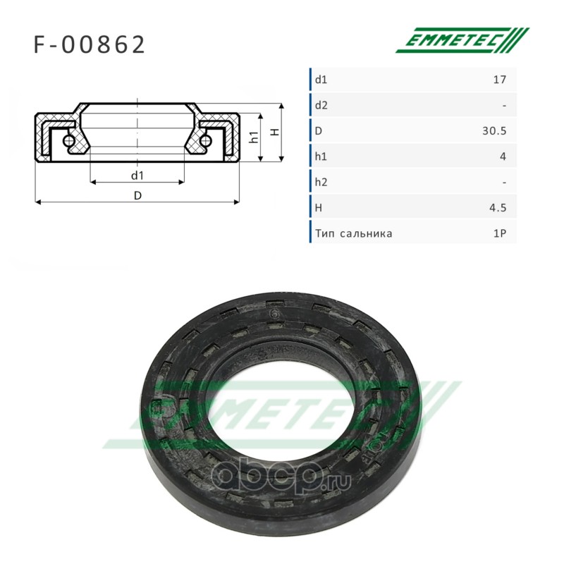 | EMMETEC | F00862 | Сальник рулевой рейки 17*30.5*4/4.5 (1P) | ||