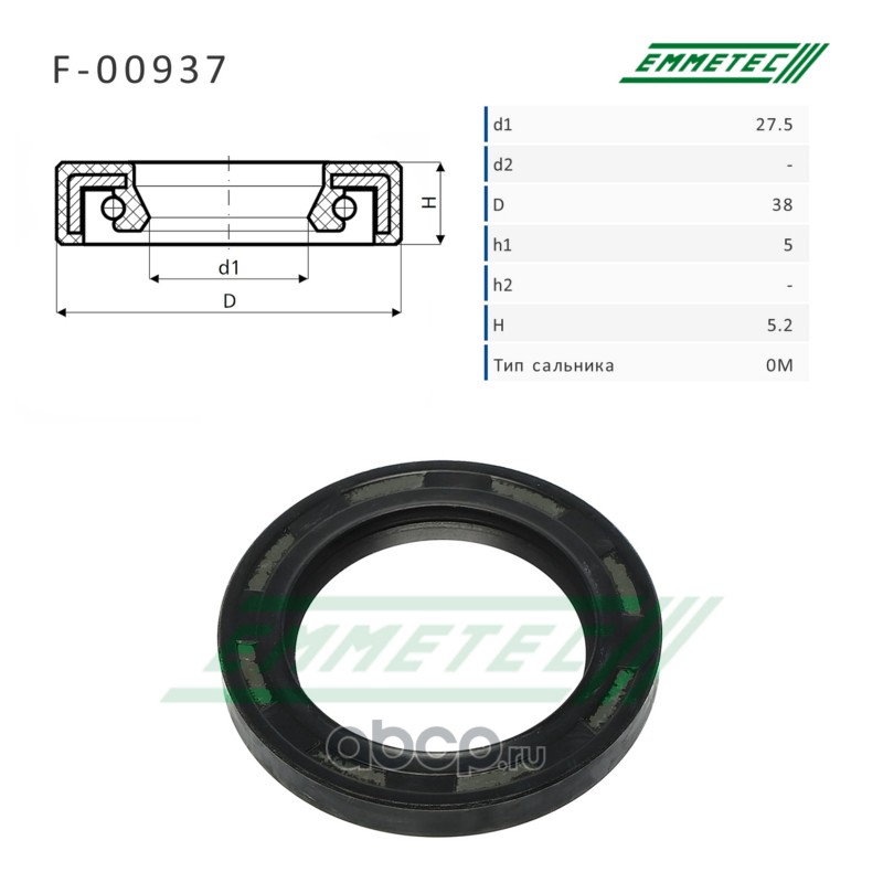 | EMMETEC | F00937 | Сальник рулевой рейки 27.5*38*5/5.2 (0M) | ||