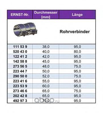 | ERNST | 290500 | Соединительные элементы, система выпуска | ||