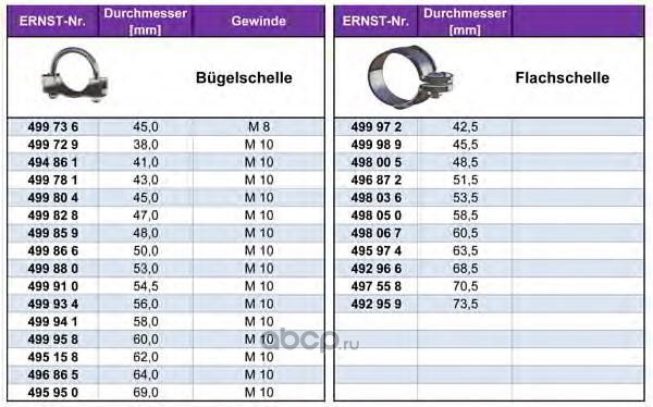 | ERNST | 499804 | Соединительные элементы, система выпуска | ||
