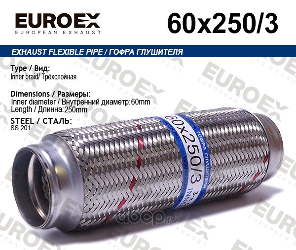 | EUROEX | 60X2503 | Гофра глушителя 60x250 3-х слойная | ||