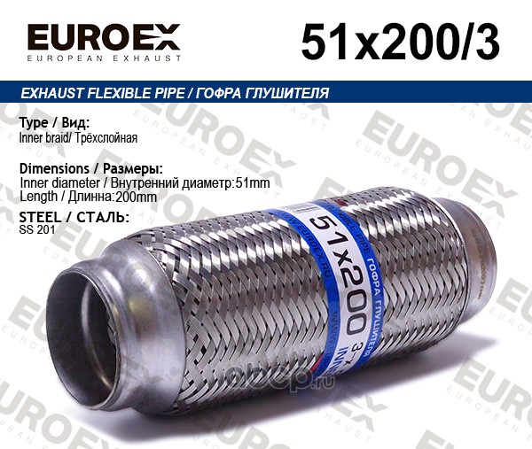 | EUROEX | 51X2003 | Гофра глушителя 51x200 3-х слойная | ||