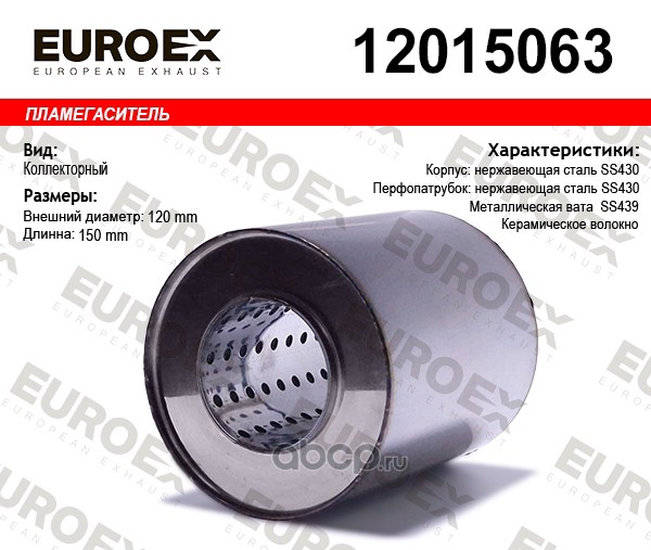 | EUROEX | 12015063 | Пламегаситель коллекторный 120x150x63 нерж. |