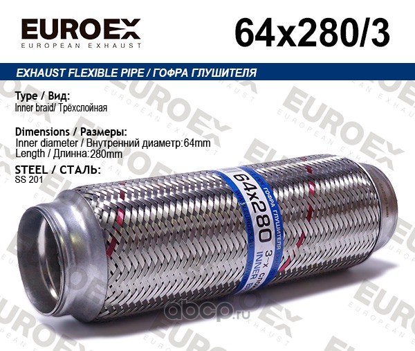 EUROEX | 64X280 | Гофра глушителя | ||