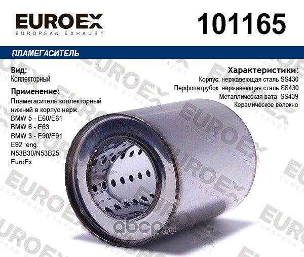 EUROEX | 101165 | Пламегаситель коллекторный нижний в корпус нерж. | ||