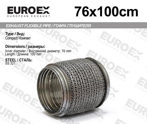EUROEX | 76X100CM | Гофра глушителя 76x100 Compact Meshed Series SS321 | ||