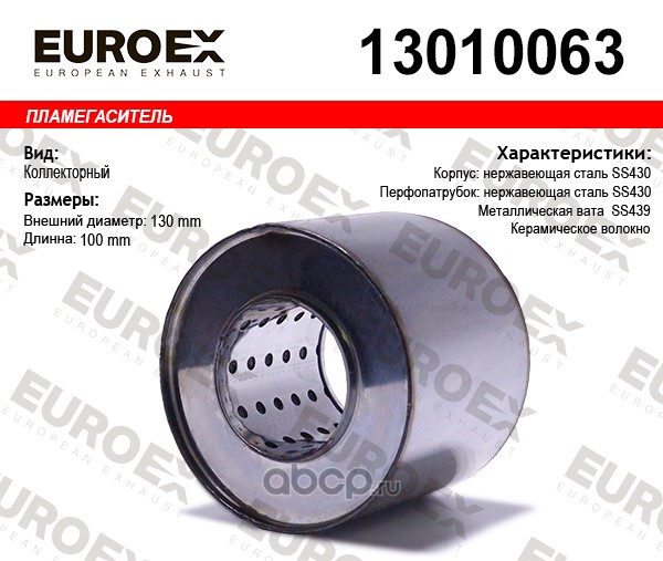 | EUROEX | 13010063 | Пламегаситель коллекторный 130x100x63 нерж. | ||