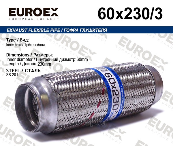 | EUROEX | 60X2303 | Гофра глушителя 60x230 3-х слойная | ||