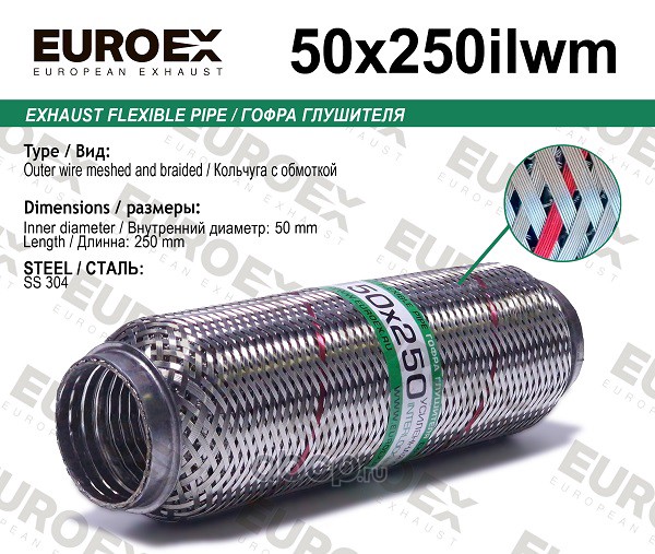 | EUROEX | 50X250ILWM | Гофра глушителя 50x250 кольчуга с обмоткой | ||