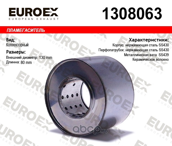 | EUROEX | 1308063 | Пламегаситель коллекторный 130x80x63 нерж. | ||