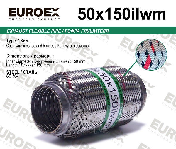 | EUROEX | 50X150ILWM | Гофра глушителя 50x150 кольчуга с обмоткой | ||
