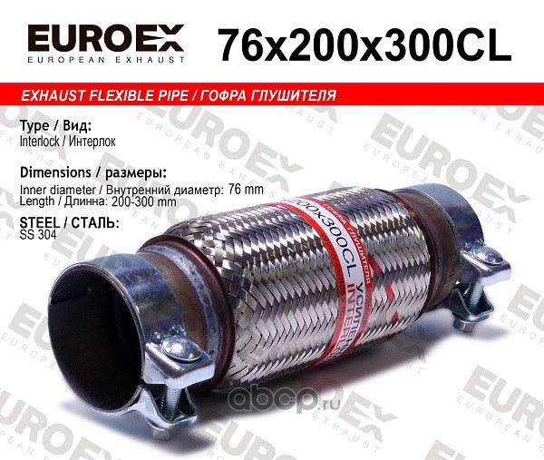 | EUROEX | 76X200X300CL | Гофра глушителя 76x200x300 усиленная (INTERLOCK) с хомутами | ||
