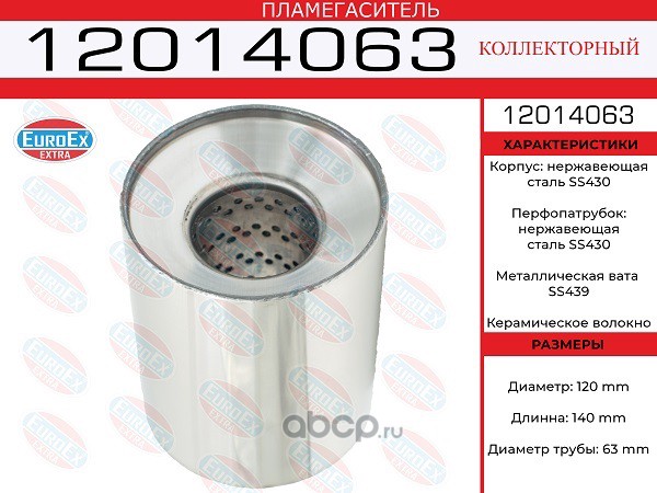 | EUROEX | 12014063 | Пламегаситель коллекторный 120x140x63 нерж. | ||