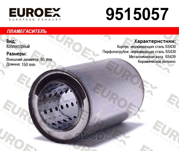 | EUROEX | 9515057 | Пламегаситель коллекторный 95x150x57 нерж. | ||