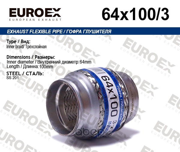 | EUROEX | 64X1003 | Гофра глушителя 64x100 3-х слойная | ||