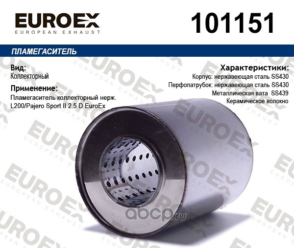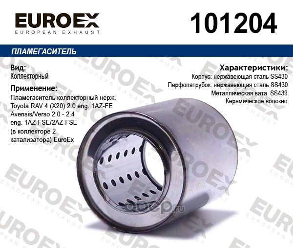 | EUROEX | 101204 | Пламегаситель коллекторный нерж. (в коллекторе 2 катализатора) | ||