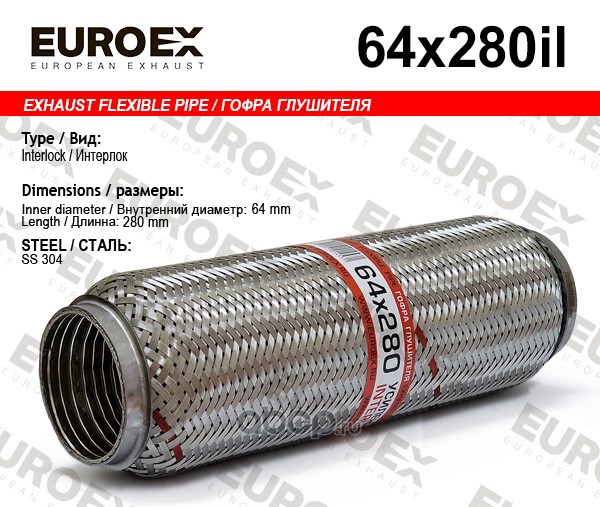 | EUROEX | 64X280IL | Гофра глушителя 64x280 усиленная (INTERLOCK) | ||