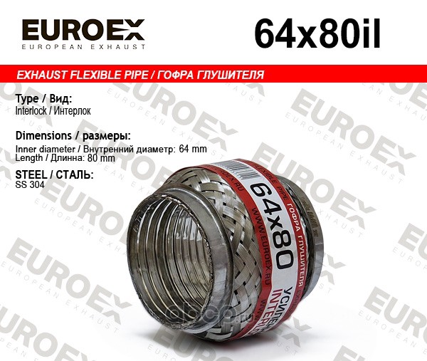 | EUROEX | 64X80IL | Гофра глушителя 64x80 усиленная (INTERLOCK) | ||