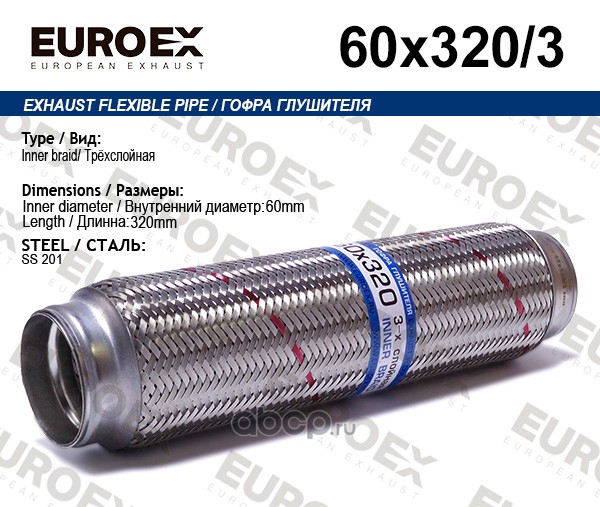 | EUROEX | 60X3203 | Гофра глушителя 60x320 3-х слойная | ||