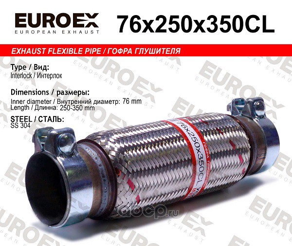 | EUROEX | 76X250X350CL | Гофра глушителя 76x250x350 усиленная (INTERLOCK) с хомутами | ||