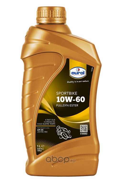 | EUROL | E1000821L | Масло для 4-х тактных двигателей Sportbike 10W60 SL JASO MA 2 (синт), 1л | ||