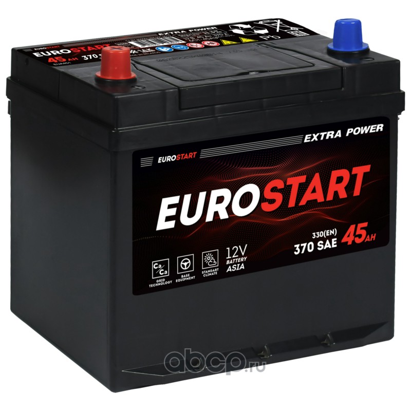 Батарея аккумуляторная 45А/ч 370А прямая полярн. выносные (Азия) клеммы