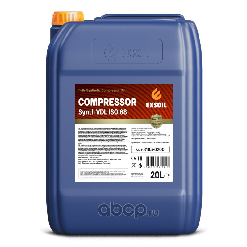 EXSOIL COMPRESSOR Synth VDL, ISO 68, DIN 51506 VDL, 20 л