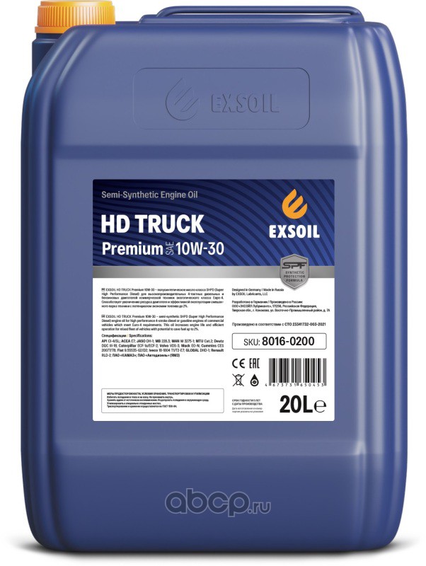 | EXSOIL | 80160200 | Масло моторное полусинтетика EXSOIL HD TRUCK Premium 10W-30 20 л. | ||