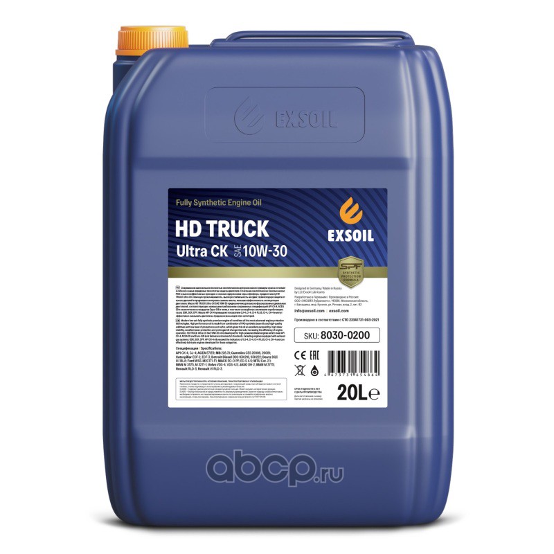 | EXSOIL | 80300200 | Масло моторное синтетика EXSOIL HD TRUCK Ultra CK 10W-30 20 л. | ||