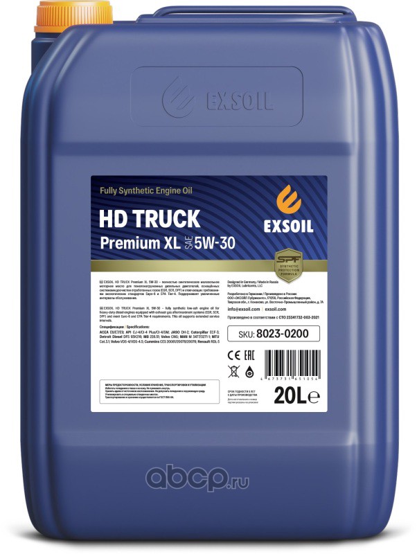 | EXSOIL | 80230200 | Масло моторное синтетика EXSOIL HD TRUCK Premium XL 5W-30 20 л. | ||