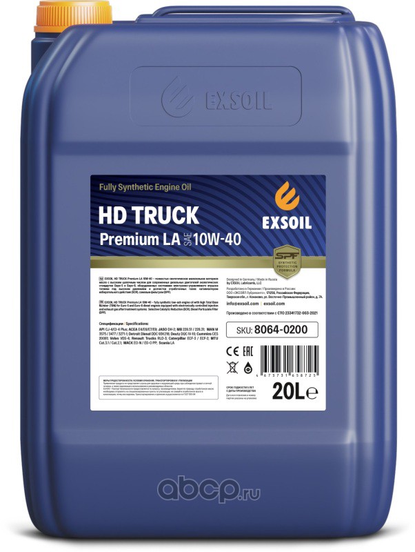 | EXSOIL | 80640200 | Масло моторное синтетика EXSOIL HD TRUCK Premium LA 10W-40 20 л. | ||