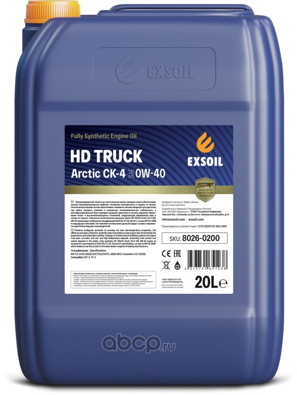 | EXSOIL | 80260200 | Масло моторное синтетика EXSOIL HD TRUCK Arctic CK-4 0W-40 20 л. | ||