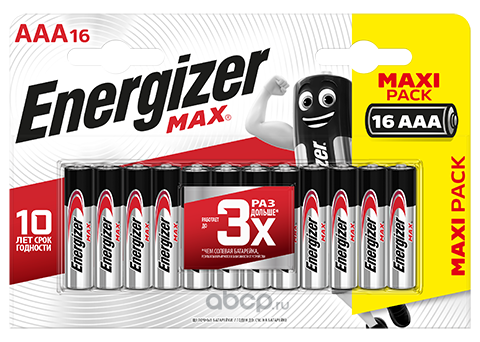| Energizer | E301433302 | Батарейка MAX AAA (LR03) 16 шт/блист | ||