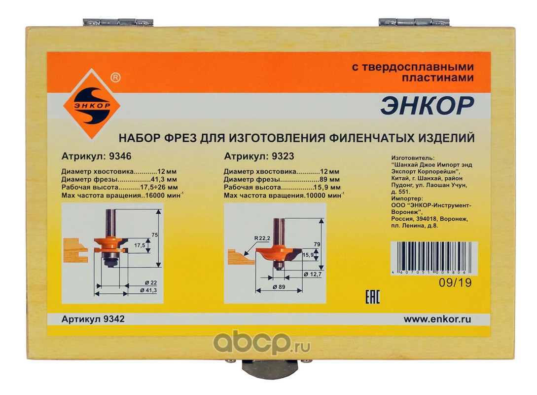 | Enkor | 9342 | Набор фрез д/изгот филен издел 2шт хв 12мм | ||