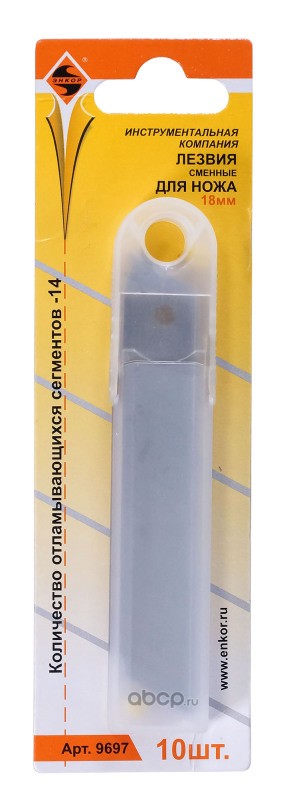 | Enkor | 9697 | Лезвия смен д/ножей 18мм,14 сегментов, 10шт | ||