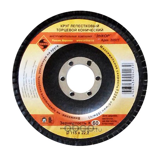 | Enkor | 20511 | Круг лепест торц ф115х22,2 К60 конич |