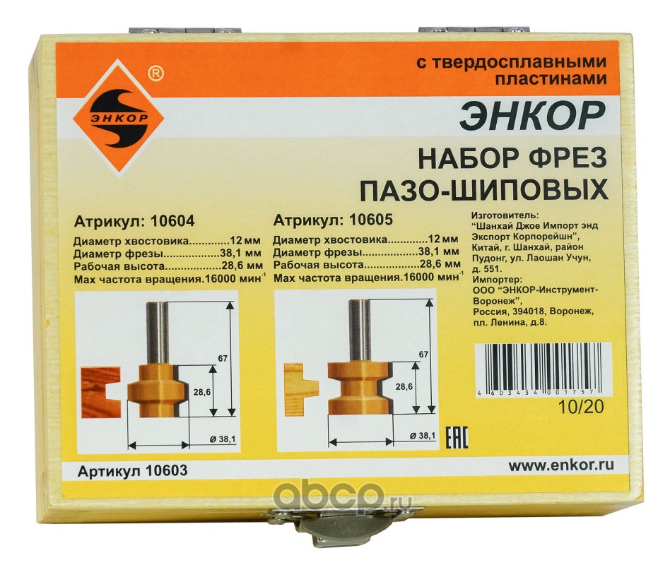 | Enkor | 10603 | Набор фрез пазо-шип ф38,1х28,6мм хв 12м 2шт | ||