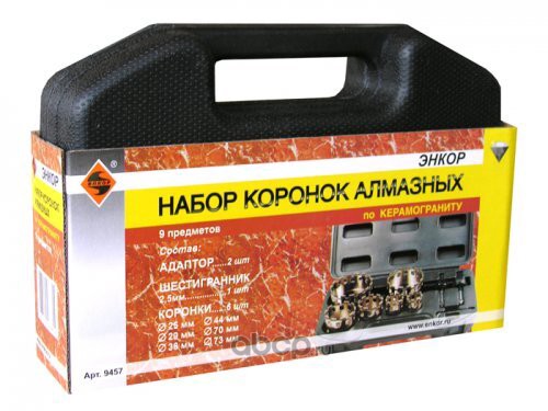 | Enkor | 9457 | Набор коронок алм д/керамогранита мокр. рез, 9 пр. | ||